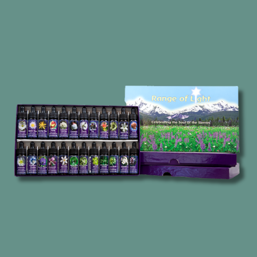 The Range of Light kit consists of 48 extraordinary flower essences. They are prepared throughout the bio-region of the Sierra Nevada Range of Light, including its magnificent alpine mountain peaks and all that flows from these heights to create lava and granite outcroppings, verdant woodlands and oak savannas, fertile river valleys, stunning coastal regions and pristine deserts. Also included as a site for some essences is Terra Flora, the FES garden in the Sierra foothills dedicated to the synthesis of human and elemental co-working.